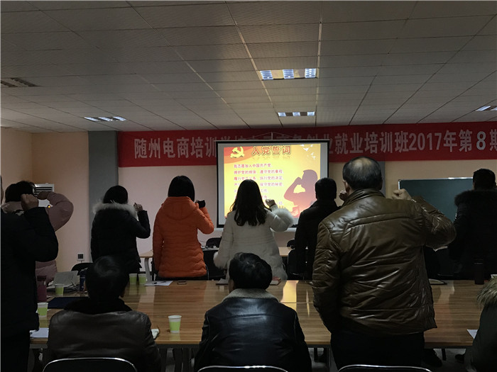 1月19日,中共隨州市人力資源和社會(huì)係障局直屬機(jī)關(guān)委員會(huì),決定成立了“中共隨州市民辦職業(yè)培訓(xùn)機(jī)構(gòu)聯(lián)合支部"。并組織已注冊(cè)登記的11家民辦職業(yè)培訓(xùn)機(jī)構(gòu)黨員開展主題黨日活動(dòng),舉行黨員宣誓,溫習(xí)黨的章程,學(xué)習(xí)黨的“十九大精神"。會(huì)議在我公司風(fēng)度電商基地順利召開,使全體民辦職業(yè)培訓(xùn)機(jī)構(gòu)黨員受到新時(shí)代黨的知識(shí)熏陶,激發(fā)其不忘初心,充分發(fā)揮好黨員在民辦培訓(xùn)機(jī)構(gòu)建設(shè)中的模范作用。并結(jié)合我公司的電子商務(wù)培訓(xùn)學(xué)校與其他民辦學(xué)校開展年度總結(jié)交流,我公司總經(jīng)理余文武代表隨州市電子商務(wù)培訓(xùn)學(xué)校在會(huì)議上發(fā)言演講。