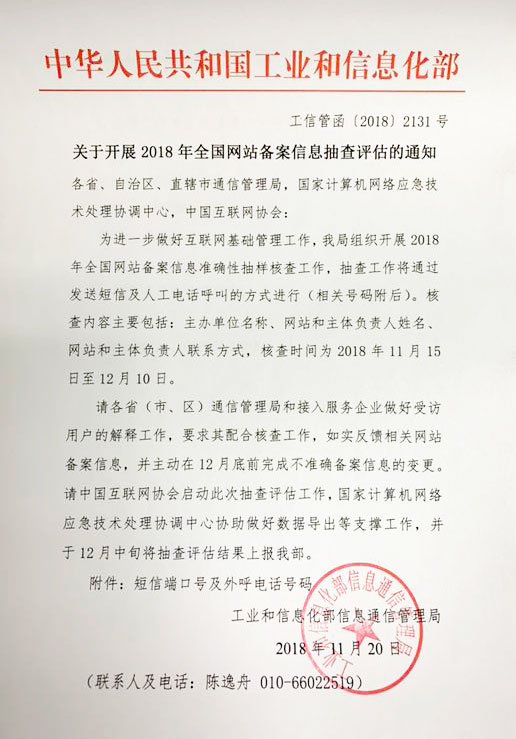 關(guān)于開(kāi)展2018年全國(guó)網(wǎng)站備案信息抽查評(píng)估的通知
